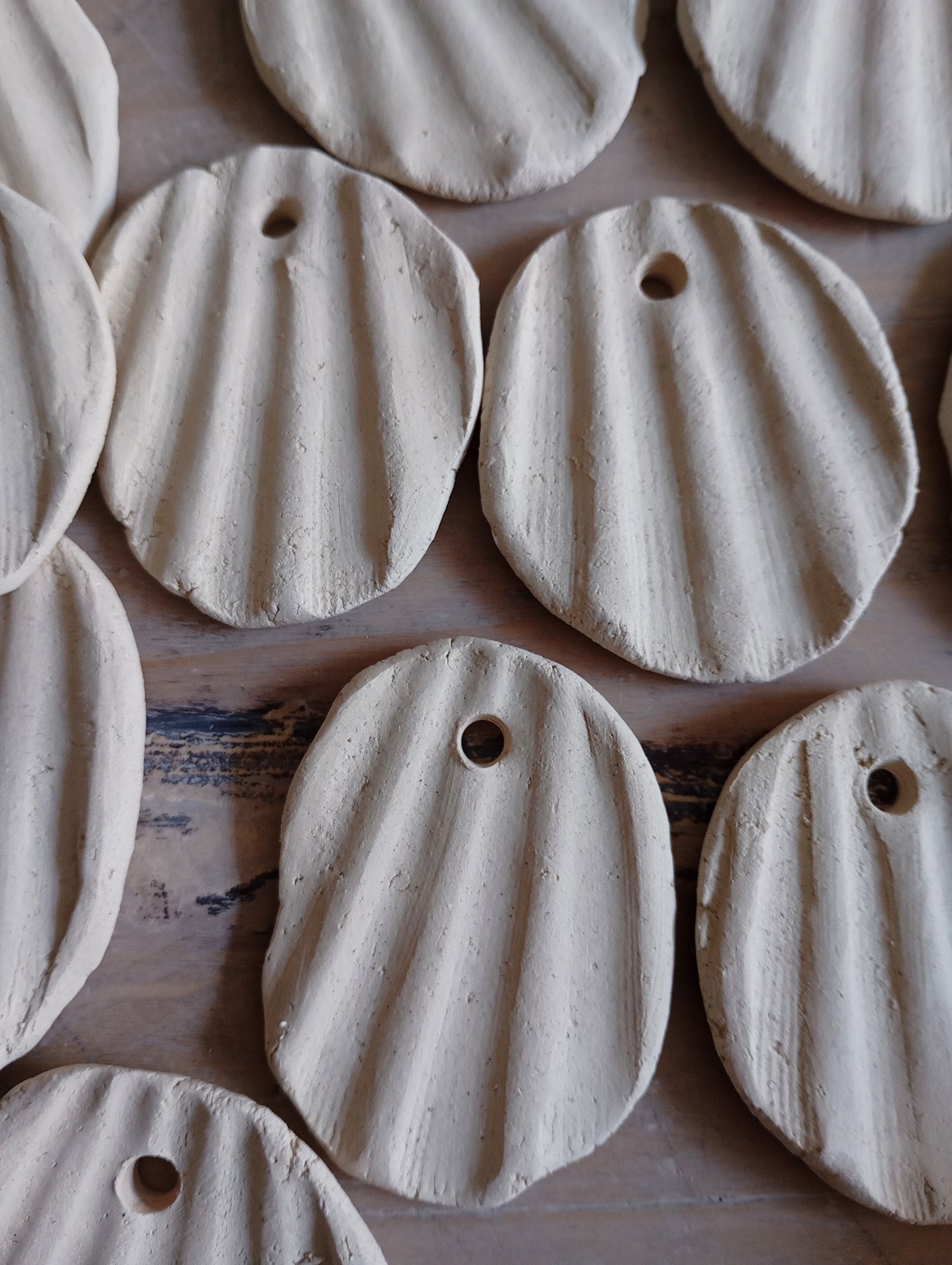Designed as a lucky charm to wear close to the heart, the Amarre necklace celebrates love, connection, and craftsmanship. At its center: a handmade ceramic shell pendant, sculpted by French artist Claire Pain who is leaving in Saint-Malo. Each piece is unique, textured, and slightly irregular — like a shell shaped by the tide.
